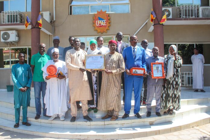 Aprรจs la visite de lโOrdre des architectes du Tchad, le Prรฉsident du CESCE, Dr-Ing Ahmat Mbodou Mahamat, a reรงu la Compagnie artistique Mantouti, menรฉe par son prรฉsident M. Saรฏd Mohamed Dongoss, venue lui remettre une attestation de reconnaissance.
