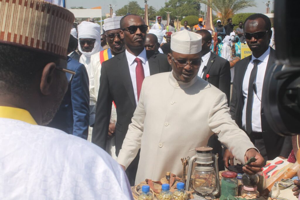 Après la cérémonie d’ouverture, le Président de la République, accompagné de plusieurs officiels, a visité différents stands représentant les provinces du Tchad, découvrant les produits et créations présentés par les festivaliers.