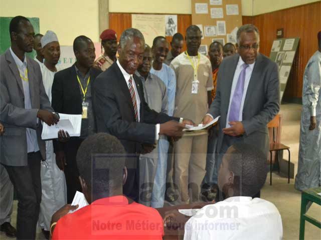 Accompagné de son collègue de l’éducation nationale et de la promotion civique Aboubakar Tchoroma Assidick et la délégation de l’office national des examens et concours du supérieur (ONECS), le cortège a été attendu une heure et demi environ. Pourtant tôt le matin toutes les dispositions ont été prises pour que les épreuves se déroulement conformément au calendrier fixé. Un retard qui a bloversé, perturbé les élèves et a permis aussi aux quelques candidats retardateurs de rechercher leur numéro de banc et leur salle de composition.