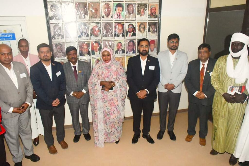 La Secrétaire d’État aux Infrastructures, Chargée de l’Entretien, Haoua Abdelkerim Ahmadaye, a reçu ce jeudi 26 septembre une délégation d’investisseurs indiens menée par SHIV KUMAR, 2e Secrétaire à l’ambassade de l’Inde au Tchad. En visite de prospection, les chefs d’entreprises indiens ont exprimé leur intérêt pour le développement d’infrastructures au Tchad, notamment à travers la production et la fourniture de matériaux de construction.