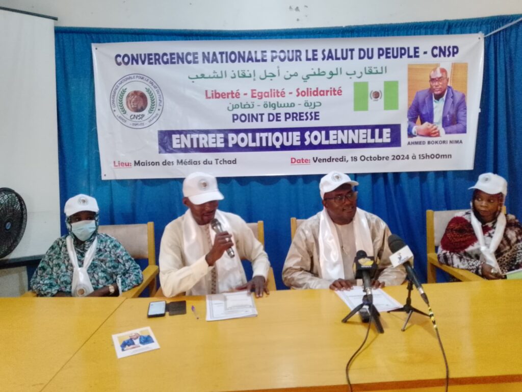 Le parti politique Convergence Nationale pour le Salut du Peuple (CNSP) a officiellement lancé ses activités lors d’une conférence de presse tenue ce vendredi 18 octobre 2024 à la Maison des Médias du Tchad. L’événement a été présidé par le président du parti, M. Ahmed Bokori Nima, en présence des membres du bureau exécutif, du bureau politique, ainsi que de nombreux militants et militantes.