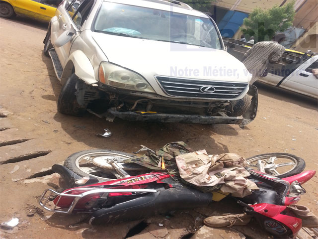 Dans ce manœuvre, il heurte un Toyata vitre fumé. Il redresse son volant vers l’axe allant au marché Dembé et ramasse deux jeunes en tenue militaire sur une moto Dame.